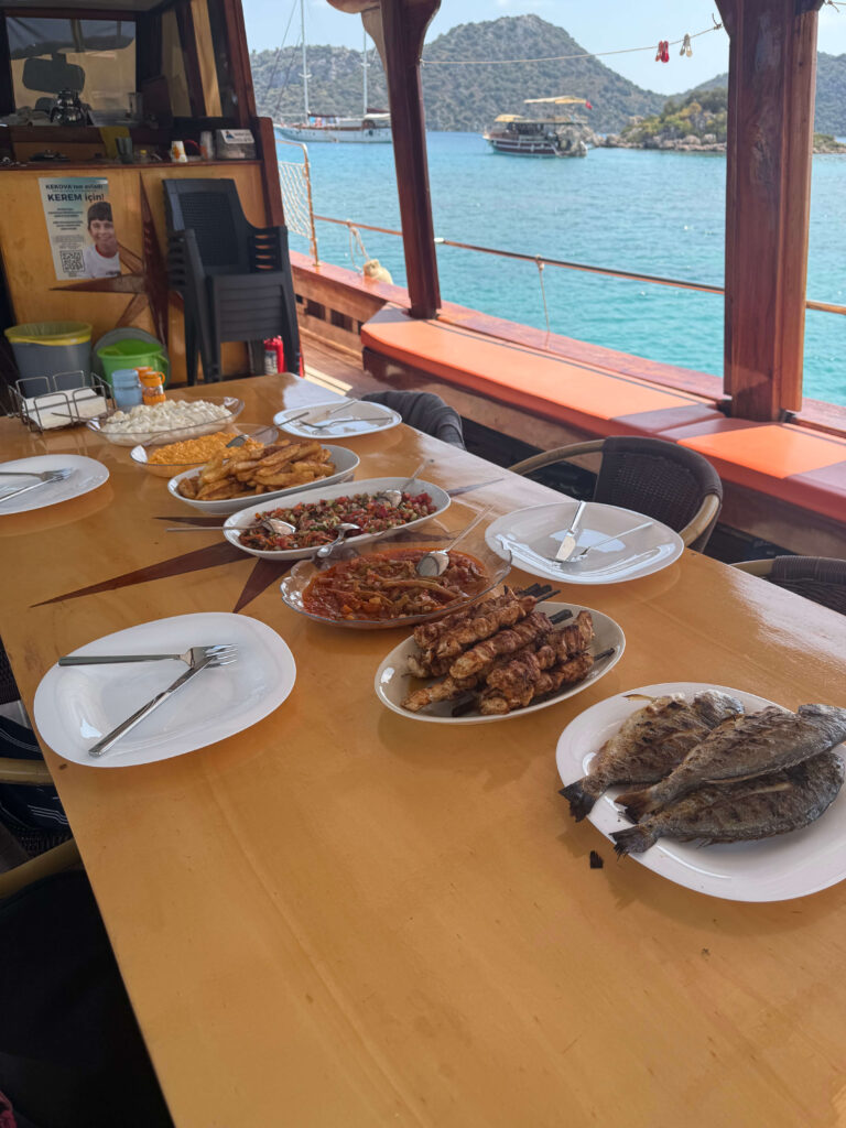 Konforlu teknemizde güneşlenme alanları, gölgeli oturma yerleri, duş ve tuvalet bulunmaktadır. Öğle yemeği ve ikramlarımız tur fiyatına dahildir.